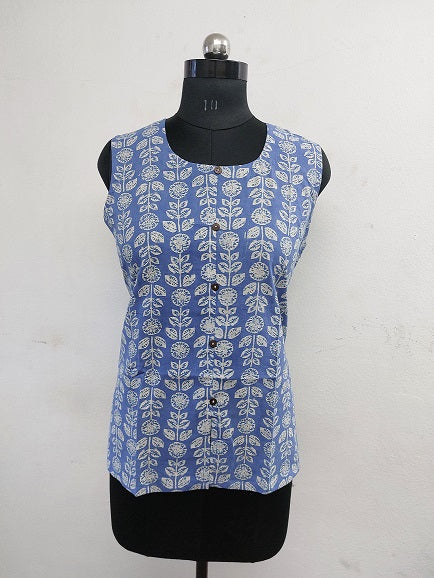 Introducing our Blue Leaf Print Kurti, expertly crafted from pure cotton for a comfortable and versatile fit. This hip length top is perfect for pairing with jeans or skirts, making it a must-have addition to your wardrobe. Update your style with this beautiful and timeless piece.